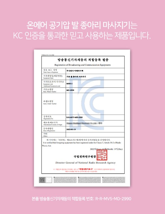 KC 인증(적합등록 번호 RRMV5MD-2990)을