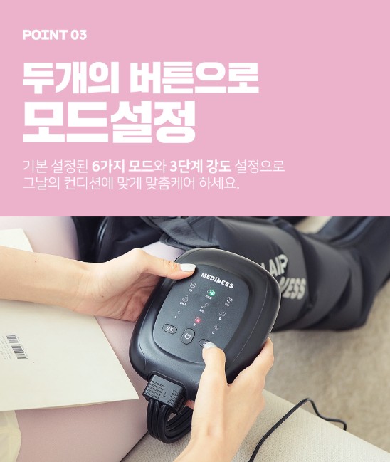 POINT 03 : 6가지 모드 + 3단계 강도 → 하루 컨디션에 맞춘 맞춤 마사지