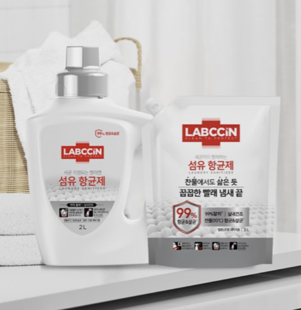 세탁물 속 세균 걱정 끝! 대용량 섬유 항균제로 옷과 침구까지 오래도록 깨끗하게 관리하세요.