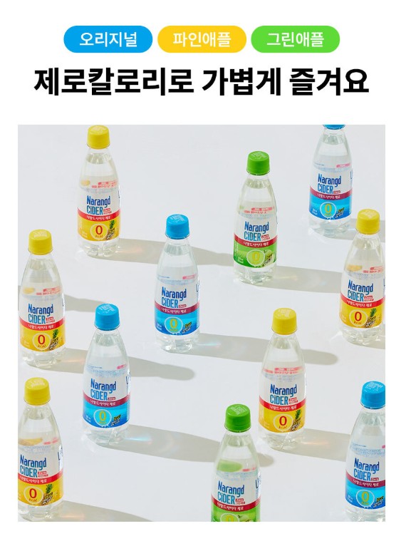 나랑드사이다 제로는 오리지널, 파인애플, 그린애플 세 가지 맛이 있어요.