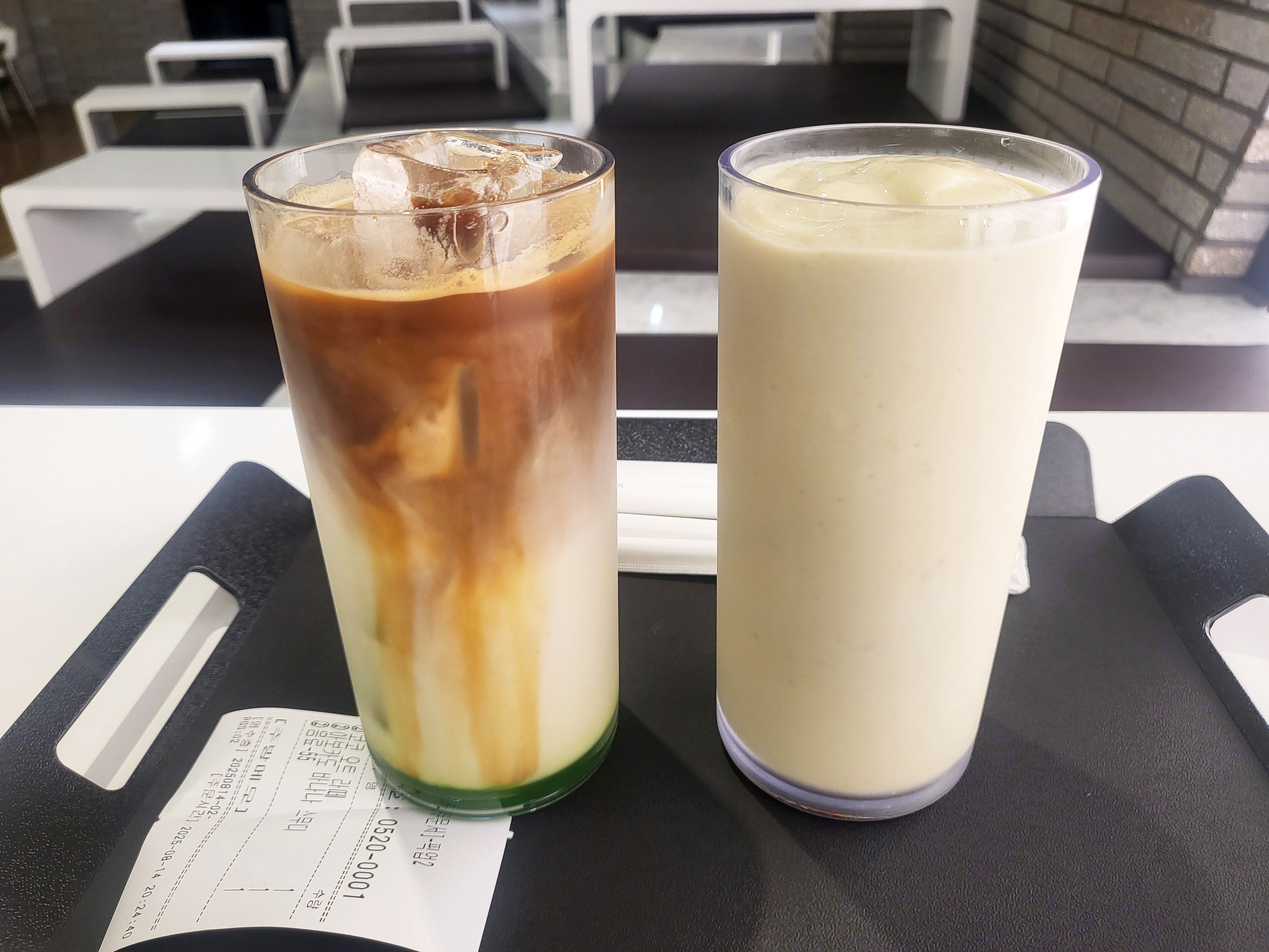 이번에 주문한 음료는 오트라떼와 아보카도바나나 스무디였어요.