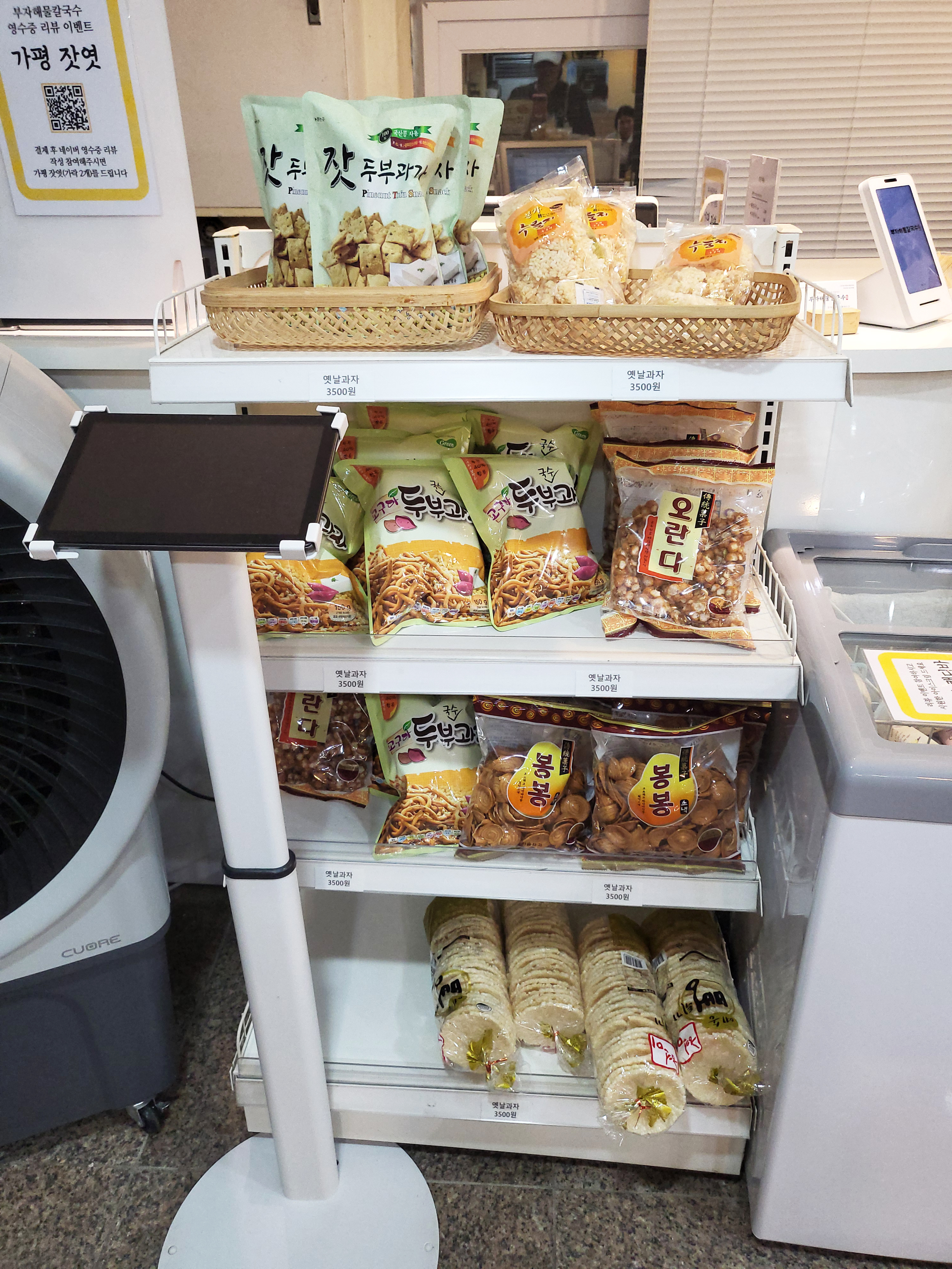 계산대 근처에는 두부과자, 뻥과자